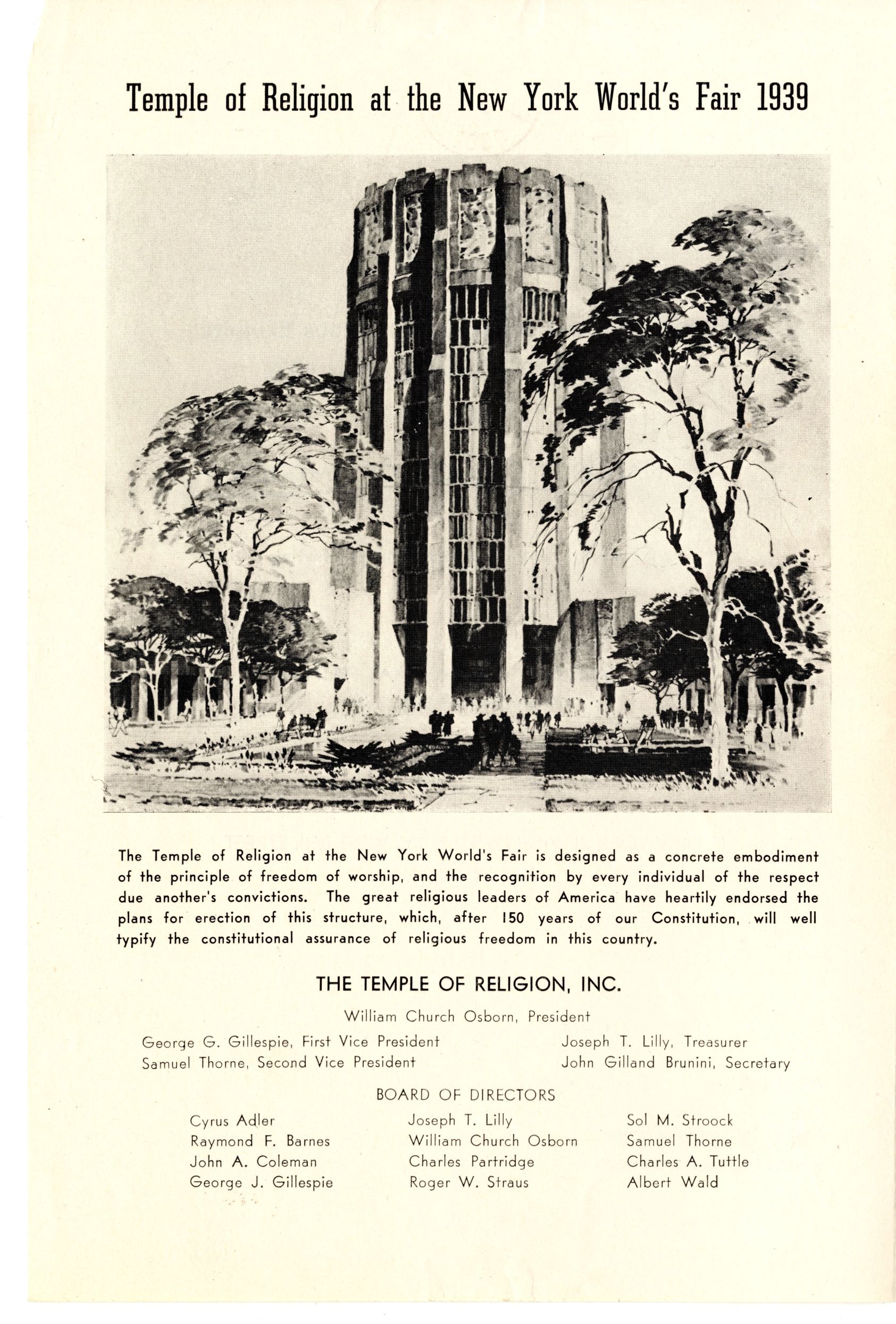 The Committee on Jewish Religious Exhibits at the New York World's Fair 1939 of the Synagogue Council of America, flyer, p. 2. The exhibit never came to fruition.